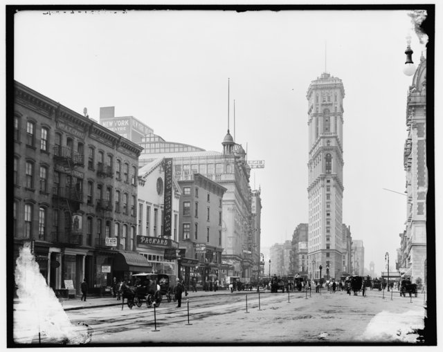 The New York Times purchased the Pabst Hotel (which is what it sounds like) between 42nd and 43rd, straddling Broadway and Seventh Avenue, and tore it down to build their fancy new office tower. Mayor George McClellan, perhaps best known for excitedly seizing and refusing to relinquish the reigns during New York City’s inaugural subway ride later in 1904, presided over the April 8 renaming ceremony.