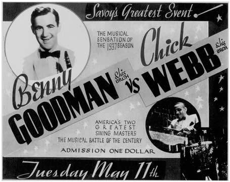 It don’t mean a thing, if it ain’t got that swing. Even in the fading days of the Harlem Renaissance, the Savoy Ballroom was still hopping with the best swing bands of the era holding court in “Battle of the Bands” fashion. The home team was run by drummer Chick Webb, a short and wildly energetic bandleader. On May 11, 1937, bandleader and clarinetist Benny Goodman’s band, which included legendary drummer Gene Krupa, faced off against Webb in a highly anticipated showdown. As usual, Webb ended the night victorious. In fact, perhaps Chick Webb’s only Battle of the Bands loss came later that year, against Duke Ellington.