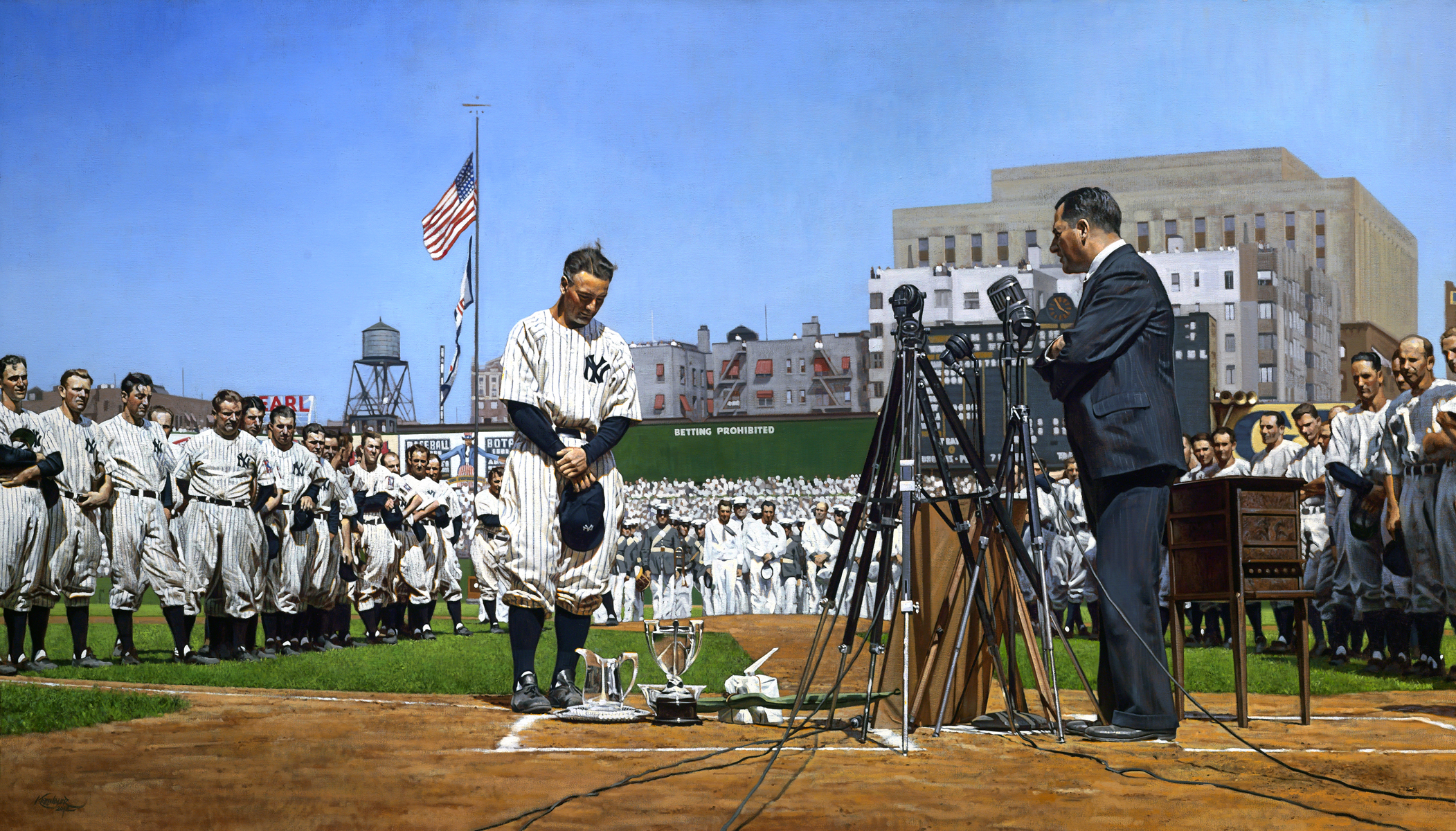 Lou Gehrig at Yankees Stadium, July 4, 1939. Image courtesy of MLB, colorization by Graig Kreindler.